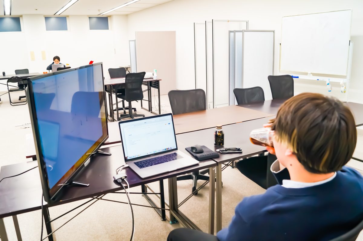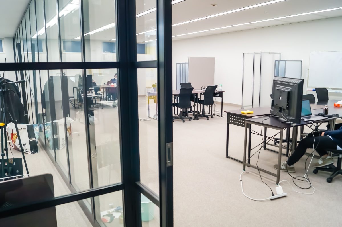 広々空間で、作業している方が。大型モニターも占領していますね^^