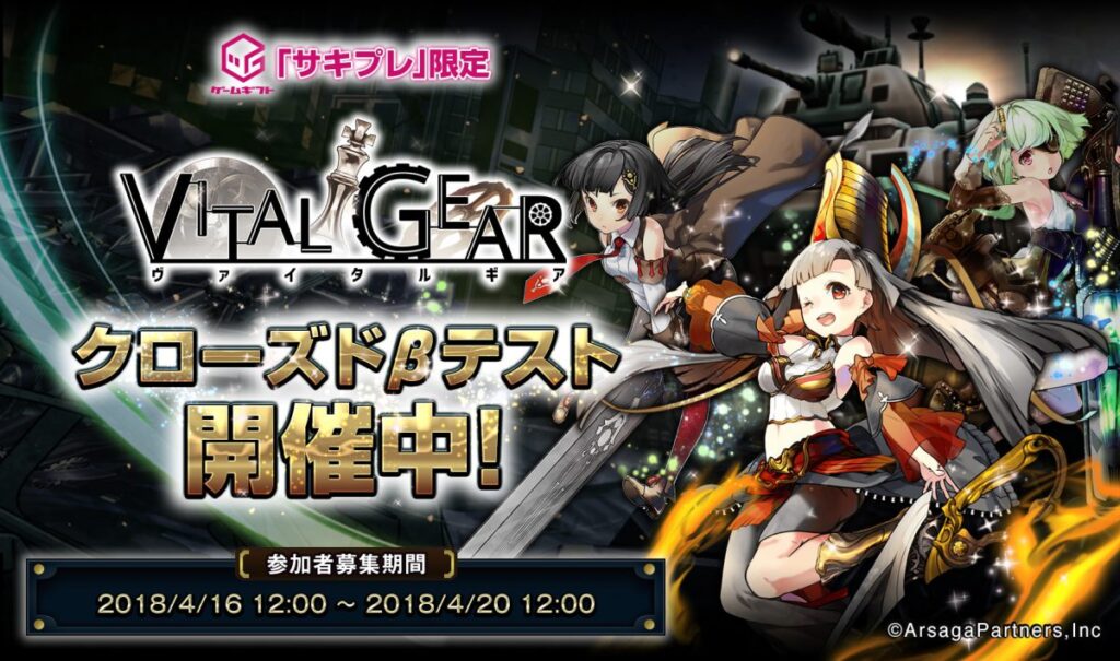 この度、『ヴァイタルギア』の提供開始に先駆け、スマートフォンゲーム総合情報メディア「ゲームギフト」のβテストサービス「サキプレ」にて、2018416日(月)より、先着1,000名様のクローズドβテストを開始いたします。