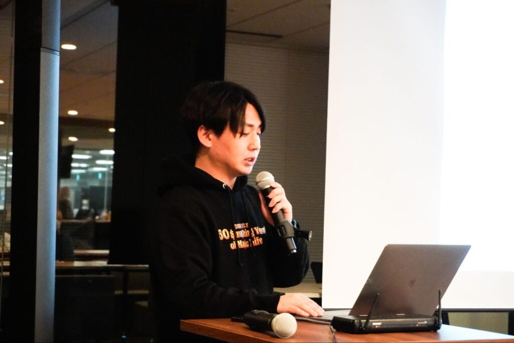 第10回目となる今回はLT(ライトニングトーク)方式で、エンジニア2名に登壇してもらいました。テーマは、1年間個人でアプリを開発した経験から語る「個人開発のススメ」と、現場のリアル体験から編み出した「生き残るための行動論」です。