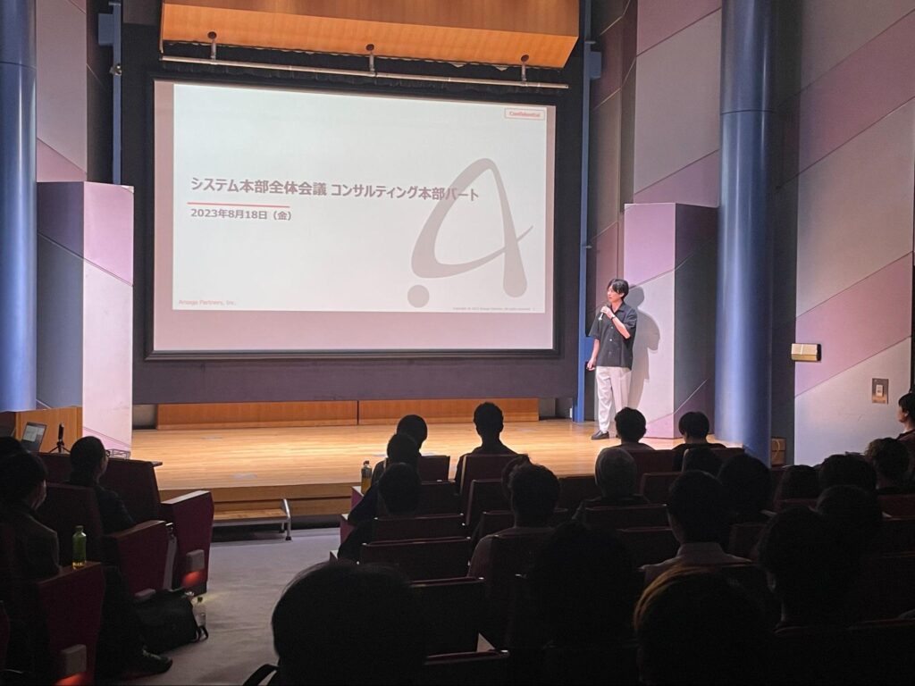 2023年8月18日(金)、アルサーガパートナーズは初の試みとなるシステム本部全体会議を開催しました。この会議は、半期に一度行われる全社会とは異なり、システム本部のメンバーに焦点を当てたものでした。