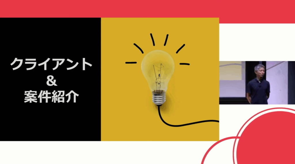 そして、メンバーへのサプライズとしてクライアントからのメッセージを集めたビデオレターを投影しました。