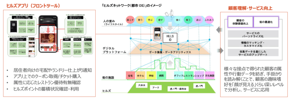 DX推進により目指すべき世界観として森ビルの事例をご紹介いたしました。森ビルでは、ヒルズID/アプリを起点とし、「暮らす」「働く」「遊ぶ」といった人の活動を点ではなく面として捉え、それらを紡ぎ合わせて「顔が見える」レベルで顧客理解を深めることで、満足度の高いシームレスな体験を提供しています。
