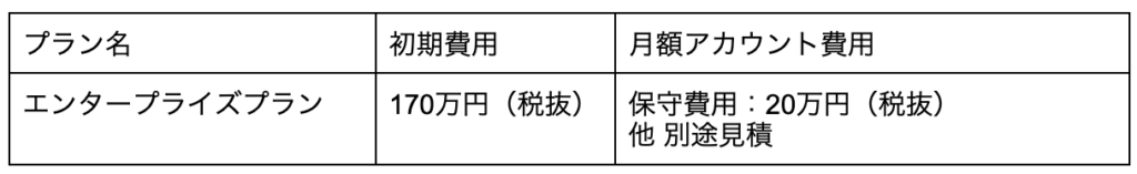 エンタープライズ版は受託開発を請け負うため、企業様ごとに見積もりをお出しいたします。初期費用は法人向けGPTサービスでは最安値で提供できる170万円(税抜)で、保守運用費として月額20万円(税抜)となります。その他オプションや各企業様独自の開発に関しては、別途見積をお出しします。