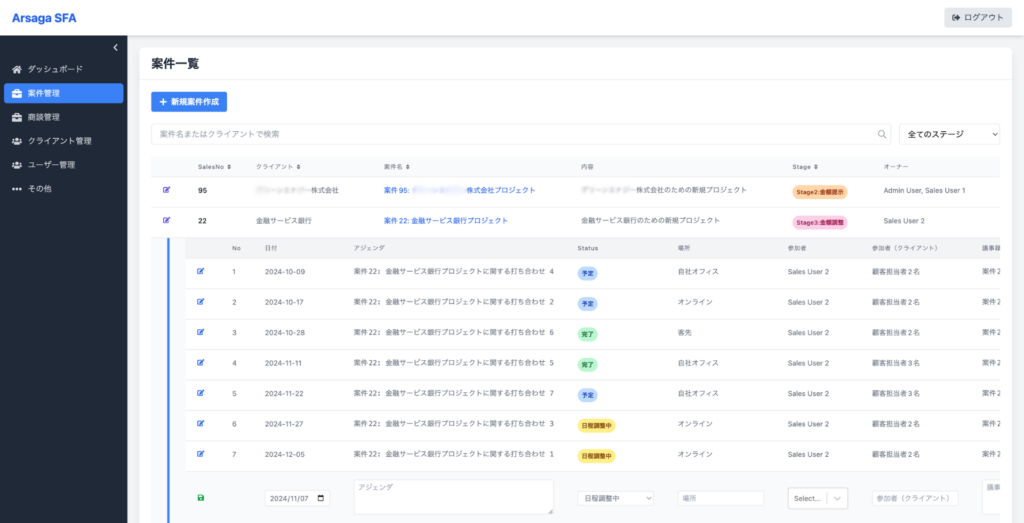 生成AIのプロジェクトを担当してるメンバーから、「案件の進捗を簡単に管理できるツールが欲しい」という要望があり、それに応えて作成したツールです。このツールでは、案件の進捗状況やステータスの確認、商談内容の記録に加え、次のステップの提案までAIがサポートしてくれる機能を備えています。